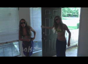DCLIP026 - STAR VS MADISON PLAYFUL APARTMENT WRESTLING Fitness model Star and runway model Madison lighten the mood in this set, each deciding to tie on their tiniest and shiniest bikinis for a playful tussle! Both naturally competitive, its fun to see them take a step back but still engage in a game of 'anything you can do, I can do better'! Each hottie is known for her incredible legs which they use often to test each others limits with some hair tugging, tickle torture, and couch cattiness included! In the end, its Madison getting sleepy time via Stars thighs! Sexy and fun! (Each clip aprox 10 mins)