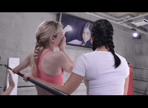 tormenting the blonde, and savoring the ass whooping she gives, taking