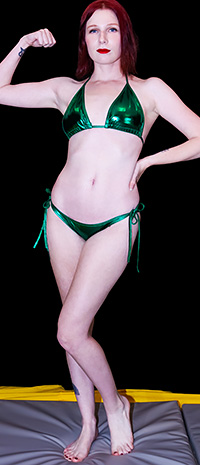 DC 3 98 - ANGELICA VS BELLA LUXXPopular bondage model Bella Luxx makes her return! First up for her: some say she looks like Taylor Swift, some say Lady Gaga, but she's quickly becoming our Rhea Ripley! It's poison Ivy Angelica! Bella is ready for her, and can't wait to end Angelica's win streak. And with a high pain tolerance along with being tough as fuck, she can do it! We all know Bella can go hard if she needs to, but it's not just about violence, but doing the right things at the right time, including psychological games to frustrate your opponent! Angelica is great at that, so that and her experience on our mats levels the playing field! Both heels assert themselves in this battle for dominance and get mean, doing whatever works including confidence destroying (or maybe motivating?) trash talk, hair pulling and all types of nasty stuff. While ferocious, it's far from a catfight, and Bella shows she doesn't need to resort to that, busting out the fancy moves like the Japanese strangle, bear hugs, and wearing Angelica out with her constricting body scissors! With some stunning escapes into reversals from both, the redhead gets her fun manipulating Bella's incredible body with chokes, joint holds, and great head scissors. They trade camel clutches and lots more on the way to a razor close match, going into the final minutes tied! Only one gets to stand tall and look like a badass, and boy does she let the stunned loser have it!