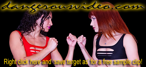 DC 3 77 - KAT VS ANGELICAHold onto your butts! We have a redhead versus (newly) redhead throw down! One of our new class of DC Girls, Angelica returns to take on world renowned former champ Kat! Angelica straight up says she was studying Kat, and it's clear she has plans to take the Ace of Dangerous Curves down! Kat, as we all know, it's not going to handle that well and handle the mouthy rookie roughly! Angelica comes out doing anything and everything she cant to get under her slender, beautiful opponents skin, and it seems to work, for a while. Points are hard to come by for the first half of the fight as neither one if going to give an inch, and Kat gets herself into trouble as it seems the new girl is going to irritate her into making a mistake. It works. And once the tempers flare as hot as their hair colors, the falls pick up and you'll see all the classics like a variety of super tight pins, chokes, head and body scissors, full nelsons, a lotus lock, and yeah, Angelica legit has been watching Kat's matches as she steals one of her favorite moves and uses it on her! How spiteful, but delightful! You can almost see the fire raging in Kat's eyes. And then Angelica does it again! We may have a budding rivalry here, but in the end, one babe is going to eat her words, endure a prolonged ending and after match torment that's going to be burned into her mind until the next time they meet! So get the first of this feud!