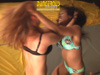 DC 090 - 'SPIRIT VS ROXIE' Two gorgeous ladies with perfectly toned figures, athletic and tough; this is the exact type of match that Dangerous Curves is all about! We haven't seen Roxie in a while, but she hasn't lost a step at all and looks fantastic in her gold bikini. Spirit was away even longer, but all we can say is holy crap does she look great! She was tough before but has been hitting the gym in preparation for her big return. She's going to need every ounce of strength too as MMA trained Roxie is a notorious ass kicker who rarely finds competition. Well our Native American beauty gives her just that, managing to resist Roxie's early scoring attempts, much to her surprise. The both struggle with head scissors, chokes, surfboards, and more until a long 10 count pin gives Spirit the early lead and more confidence. Roxie is not used to fighting from behind but that exactly just what she has to do all match and Spirit takes her out of her element with body scissors, school girl, and matchbook pins. Roxie charges late though and keep the score close with submissions that have Spirit banging the mat for relief. Both beauties are taken to the limit, muscles are strained, bodies are bent, and pride is broken finally with a head scissor that seems to go on for days. The eventual winner knows she has her opponent at her mercy at last and does everything she can to let her know about it, including knocking her out! Totally sexy after match posing too! You will love this match!