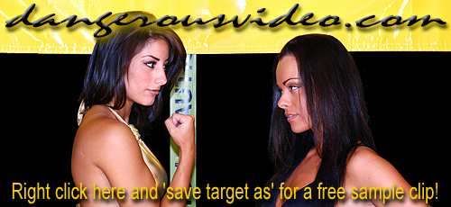 DC 087 - 'BAILEY VS REESE' We don’t think the debut of a new Dangerous Curves Girl has been any more anticipated than this video featuring the drop dead gorgeous Bailey, "The Scorpion Girl", younger sister of all time favorite DC Girl Vanessa! For years, Vanessa has been telling us about her little sister who was just itching to kick some ass on the DC mats. Finally legal and now trained, we can’t wait to show you the results! Bailey has a tough task in front of her though, in the form of lithe beauty and very experienced Reese! Reese has taken on Bailey's older sis way back on DC024, and let's just say is not impressed with rookie, stunning her early and scoring with a grapevine pin. The veteran Reese has spent many matches suffering at the hands of bigger, stronger girls, and you'll love how she takes out her frustration on Bailey, savoring every pin, hair pull, head scissor, full nelson, and anything else she can think of! Bailey shows the same fire and sexy intensity as her sister, but in addition, a little bad ass attitude that's all her own and manages to keep things nice and even, showing off her potential with cradles, matchbook pins, body scissors, and chokes! It's anyone's match right up until the very end where one starts pulling away on points and finishes things off with a slow knock out ending. This is one of those matches where it sucks that one has to lose, but in the end, we're all winners!