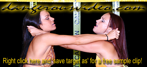 DC 080 - 'AUTUMN VS BELLA' A career is on the line in this exciting, wild, and competitive new video! Bella is a prideful girl and has not liked her results so far on the Dangerous Curves mats. She told us before the shoot that if she couldn't stand victorious at the end of her next match, she would quit fighting for good. We figured it would be fair to let her choose her opponent. She could have chosen someone smaller or less experienced, but we had to admire her guts when she said: "I want that red headed bitch!" Autumn, still smarting from their last encounter, was all too eager to go another round with the possibility to getting rid of Bella for good! What followed might be our roughest match to date! Both lasses leave it all on the mats along with their sweat, tears, and hair! They crush each other’s bodies with tight scissors, anaconda and guillotine chokes, and more. They strain to hold each other down for pins. And we haven't even gotten to the hair pulling! They both constantly pull and yank, banging each other’s heads into the mat! Add in some stomach punching, kicking, and lots more and you'll get an action packed 30 minutes! They go all out, fighting on the mats, off the mats, and all over the studio until one feisty hottie finally gets the upper hand. Then it's lights out! Have we seen the last of Bella? There's only one way to find out the results of her personal challenge. You know what you have to do!