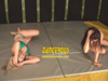 DC 096 - 'ANGEL VS TORRIE' OIL WRESTLING! Not to get ahead of ourselves, but Spirit has come back to DC on fire and talking a lot of trash about our queen bee Torrie, finally challenging her to a match. Torrie of course accepted wants to 'put that bitch in her place'! That match will happen soon, but in the mean time, we made both earn their shot at each other by taking on tough opponents while the other watched! So with Spirit looking on, Torrie has to deal with the ever sexy 'Devilish' Angel, clad in a tiny thong bikini that shows off her perfect body just right. Not only is Angel bigger, but she has years of oil wrestling experience fighting in clubs, and it shows, answering with pins and submissions right away after Torrie thinks she has a lead. It’s almost as if these two both know every move that's going to score points, humiliate their opponent, and make themselves look spectacular! Body & head scissors, pins, camel clutches, MMA arm bars and triangle chokes, hammerlocks, and the Boston crab; along with simple, sexy moves like stomach punching, knees in the back, and hair pulling galore make this one as fun to watch as it was painful for them! With the added pressure of Spirit watching her every move, Torrie cannot afford to look bad, but finds herself struggling often and stuck in a dead even tie. A series of pins followed by a head scissor finally lets one girl dominate the last 10 minutes, destroying her foe and making it clear who won by forcing the loser say her name! Does Torrie survive or should Spirit be more worried about Angel?