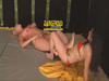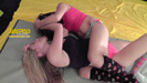DC 124 - REESE VS TORRIE Time for the DC veterans to have center stage all to themselves as long time fan favorite, 'Rebel Diva' Torrie takes on longer time fan favorite Reese 'The Black Swan' in a best-of-three rounds challenge! To be different we had them dress up in their tightest tank tops, undies, and yep, those are knee high socks! Cute huh? But these two are anything but adorable when the match starts for round one: Pins only! The object is to score as many pins as possible in 10 minutes. It's fast paced and dead even as both roll each other up in tight schoolgirl pins, cross body's, full body's and some they even made up! With some extra punishment thrown in to wear each other down, Torrie takes a win a win and then we're on to round two: scissor submission only! Reese is down already and if she wants to avoid ten minutes of punishment at the hands on a skilled and arrogant blonde, she needs this round! Problem is, scissors are what Torrie does best! Reese is game though and manages to hold a one point lead as they put each other through torturous body scissors with limbs twisted and wrap their legs around each others heads! Reese just escapes with a win this round, beating Torrie at her specialty. Think the blond wont be pissed for round three? Its belly punching time! Nothing counts but tummies being beating until they cant take any more! You will hear each smack and see smooth skin turn red! The winner finally stops and looks down smugly at a loser who tries to stand but can't, collapsing back down, arms around her mid section and writhing! Awesome!