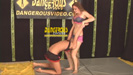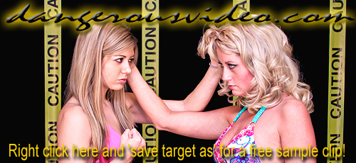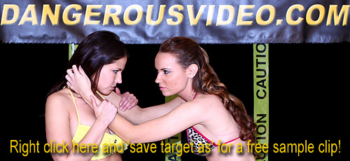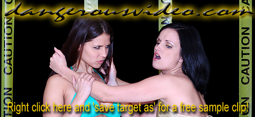 DC 112 - DANNI VS AUTUMN The hotties just keep coming! This video marks the first match of the next DC Girl to prove her worth, Danni, who has picked up the nick name 'Dangerous' because she's just the epitome of what we look for in our fighters: Gorgeous and tough! She couldn't have a tougher opponent for her debut though as she takes on the original Dangerous Curves Girl, Autumn in a rough and highly competitive battle! As you can see from the photos, the newbie is lean and toned up, and as you'll tell from the video, she can take a lot of punishment and keep asking for more. Autumn puts her in everything but just cant seem to force a submission. Body scissors? Autumn tries but Danni wont budge. Autumn tries choking her but she still refuses. The new girl finds herself in a variety of head scissors but just wont give Autumn the pleasure of letting her hear an "I give!" Full nelsons, surfboards, hair pulling: No, no, and no. Both are quite good at getting out of each others pin attempts too and the score is still knotted at 0-0 late into the fight! Autumn is frustrated and tired but throws everything she can at the rookie. Danni is hurting and not as skilled but wants nothing more than a win over one of DC's best for her first impression. It comes down to the wire with one taking advantage of the others exhaustion and just barely scoring the match's lone point to go on and enjoy what the writhing loser called a lucky victory! Check it out!