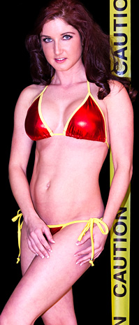 DC 180 - KAT VS LONDON The next hot match up features two rookies looking to get some momentum going as tall, blonde, heelish, and mouthy Kat is back to take on petite, red headed, good girl from the UK, London! Both in matching tiger striped bikinis that couldn't possibly fit their toned bodies better, these two lasses go right at each other energetically with a couple of pin attempts, neither being successful, and then with the sexy submission holds! Kat learned very quickly the damage she can do with her long legs and tangles a spirited London up in them as frequently as possible and scoring points with scissors to the head and around mid section of her smaller opponent. The British cutie does all she can to keep out of them and wear Kat down, making it simple and keeping herself in it with choke outs and long 10 count pins! After a few more rounds of suffering between Kat's legs, you can see the light bulb go off in London's head and she instantly starts punishing the blonde beauty's gams with painful Boston crabs and leg locks! The girls employ lots of stretching holds like surf boards and bow and arrows, arms submissions like hammer locks and arm bars, and even a nice dragon sleeper and camel clutch! You'll love seeing these two newbies try and make progress at the others expense, and while its mostly a close match, the eventual winner is in control and knows it, casually locking in what's turning out do be a devastating finisher for her! Then you'll enjoy lingering views of our victorious vixen and her vanquished victim!