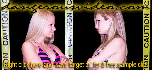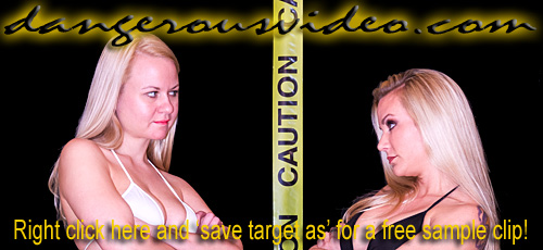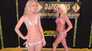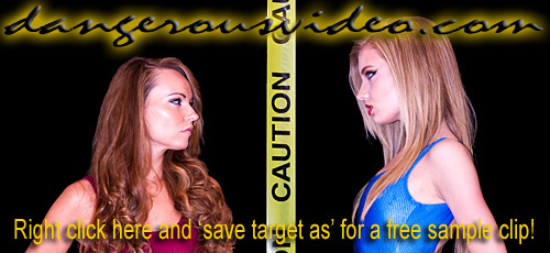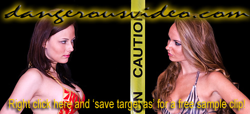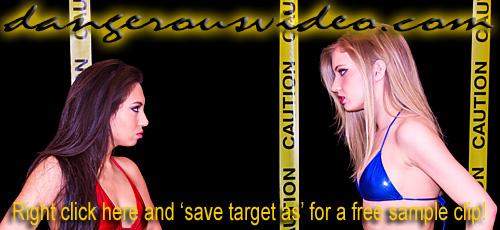 DC 177 - ADRIANA VS KAT Right out of training, we knew these two rookie DC Girls were not going to get along in a great way, so we got them to battle it out asap! It's quite a visual contrast when tall, leggy, blonde-in-blue 'Wild' Kat takes on tanned, sultry, brunette-in-red 'South Beach Babe' Adriana in a clash of the new girls! Both still raw but eager to display their prowess, they don't hold anything back in their attempts to one-up each other, be it physically or verbally! Wonderfully arrogant, Kat has shown she has a mouth on her and comes out spitting venom right away and then proceeds to back it up, scoring on Adriana with pins and head scissors, showing the blonde has quickly learned that her long gams are two keys to victory for her. Adriana though, wants Kat to STFU and shows when pushed, she'll push right back and keeps it close with chokes and scissors of her own. With two newbie hotties fighting to establish their place in roster, they keep it simple with schoolgirl and matchbook pins, surf boards, full nelsons, and loads of close body contact holds and gorgeous figures squeezed between thighs, which they are not shy at all about doing! Kat lives up to her name and gets catty with hair pulling and stomach punches which clearly piss off Adriana, forcing her to give it right back! Just when you think one of these beauties is dominating, you'll witness one of the greatest come backs in DC history that results in a stunning finish with one getting choked the fuck out and taunted! Seriously, sometimes two girls just spark together, and if this first match is any indication, these two are going to have one hell of a rivalry!